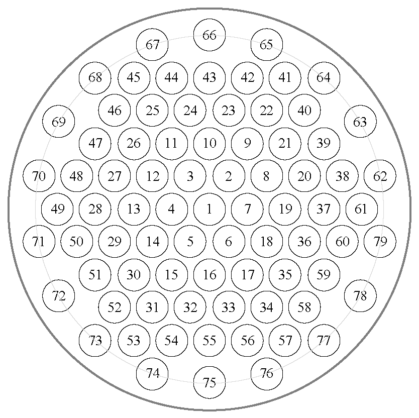 The mirror has 79 PZT actuators, with 61 actuators forming a hexagonal grid with 4.7 mm pitch, and 18 actuators placed on a circumference with 21.6 mm radius. Free actuator stroke is approximately 7 µm, the stroke difference between the neighbor actuators reaches 1.5 µm.
