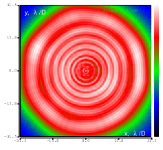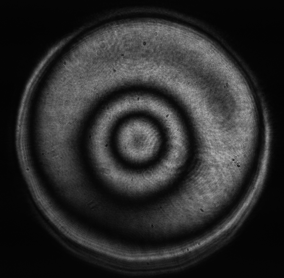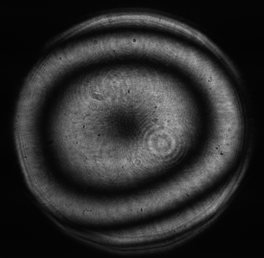 Figure 9: Defocus (Zernike term Z[2,0]) of amplitude -3.2μm generated. top: reconstructed wavefront (left) and simulated interferogram (right); simulated far field (left) and registered interferogram (right) .