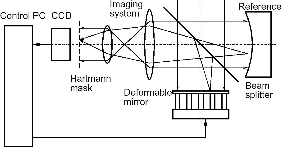 Place the mirror and the wavefront sensor into an optical setup. The optical scheme should satisfy the following conditions.