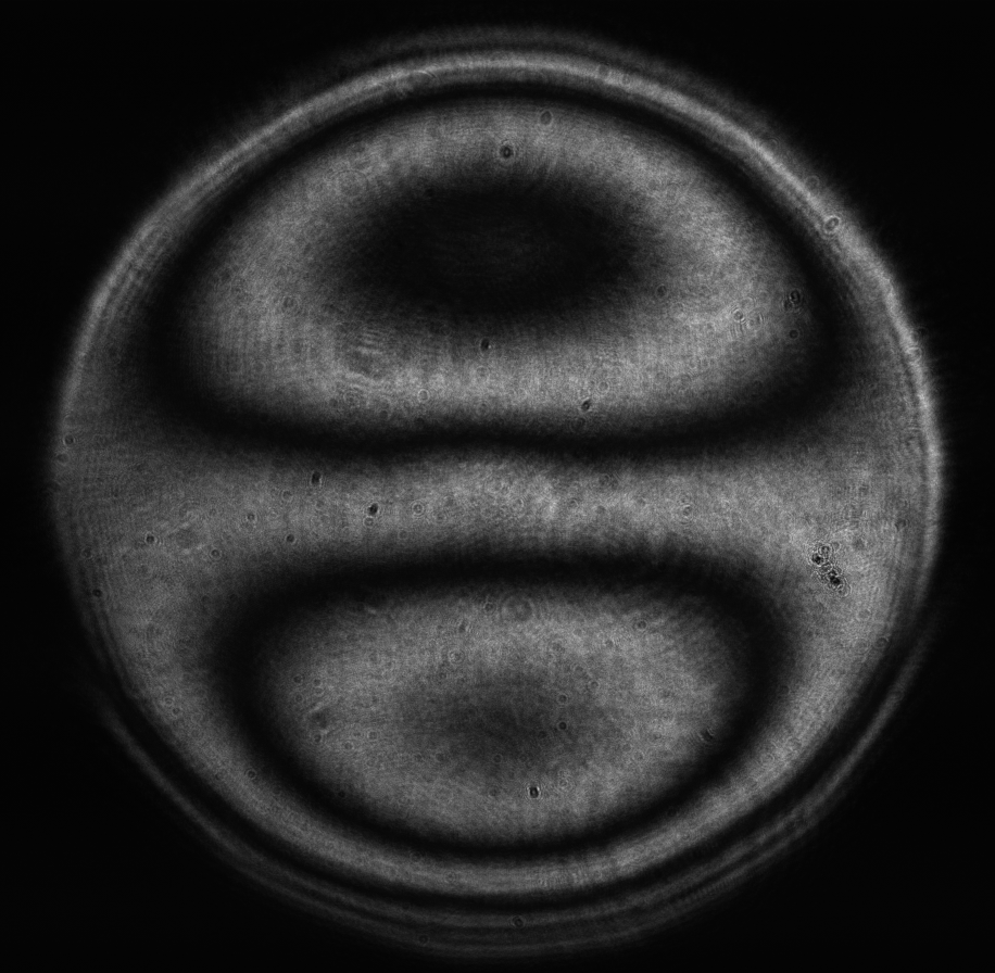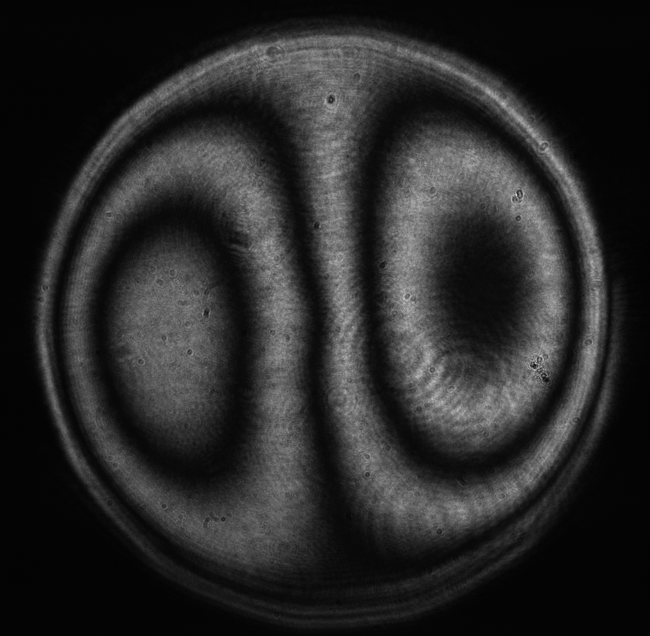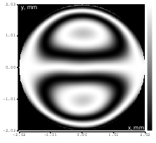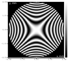 Figure 18: Zernike term Z[4,-2] of amplitude 0.7μm generated. top: reconstructed wavefront (left) and simulated interferogram (right); simulated far field (left) and registered interferogram (right) .