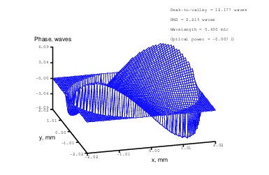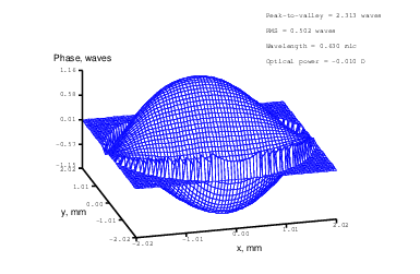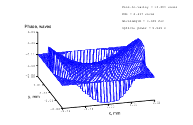 Optimization started from the initial shape of the mirror, which was produced by setting all mirror values to zero; this shape is shown in Figure 5.