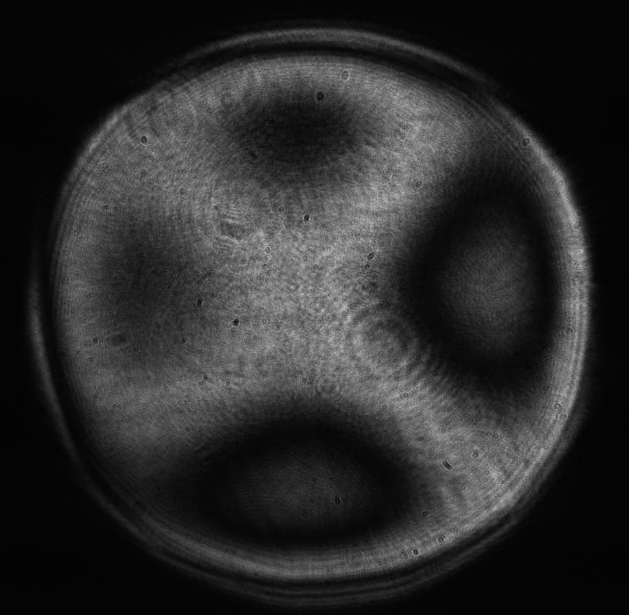 50 mm PDM with 39 actuators with low-order aberration optimized layout is tested with a wavefront sensor configuration based on UI-1540 camera with a standard microlens array (pitch = 150 µm, focal length = 3.5 mm).