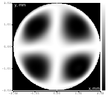 Figure 20: Zernike term Z[4,-4] of amplitude 1.7μm generated. top: reconstructed wavefront (left) and simulated interferogram (right); simulated far field (left) and registered interferogram (right) .