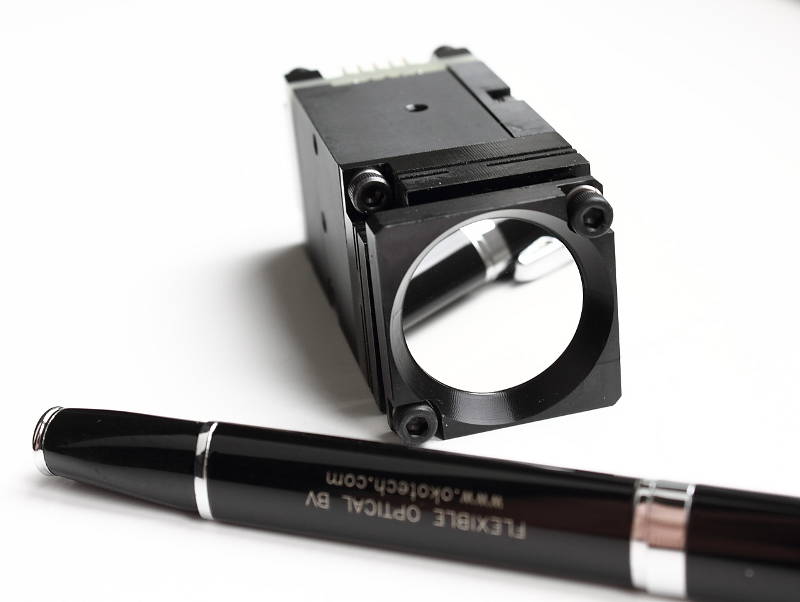 The fast steering platform PDM-2-TT can be used alone or in combination with some other deformable mirror for tip/tilt correction to archive better performance. It has deflection range of +/-1 mrad and useful frequency response of 300Hz. The device is controlled by applying analog voltages with maximum amplitude of 350V to its 3 piezoelectric actuators. We recommend our USB Tip/Tilt Control Unit for driving the device. The corrector is supplied without optical part but can accept any front surface mirror with diameter from 10 to 25 mm. Compact size (35x35x65 mm) of the unit allows the user to fit it into any optical setup.