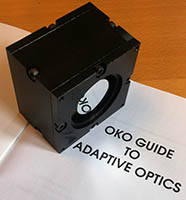 {gallery /} This extremly low cost tip-tilt mirror is controled by 2 mechanical actuators, driven by inductive coils, providing +/- 4,4 mrad deflection range in x and y axes, with smooth operational frequency up to 100 Hz (first resonance frequency at 240 Hz). The clear aperture of the mirror is 25.4 mm and the overal size of the device is 57 × 57 × 40 mm³. Each channel of the device can be controlled by an analog input of 0 to 5 Volts. For a digital control, we recommend our 4-channel USB DAC Unit.
