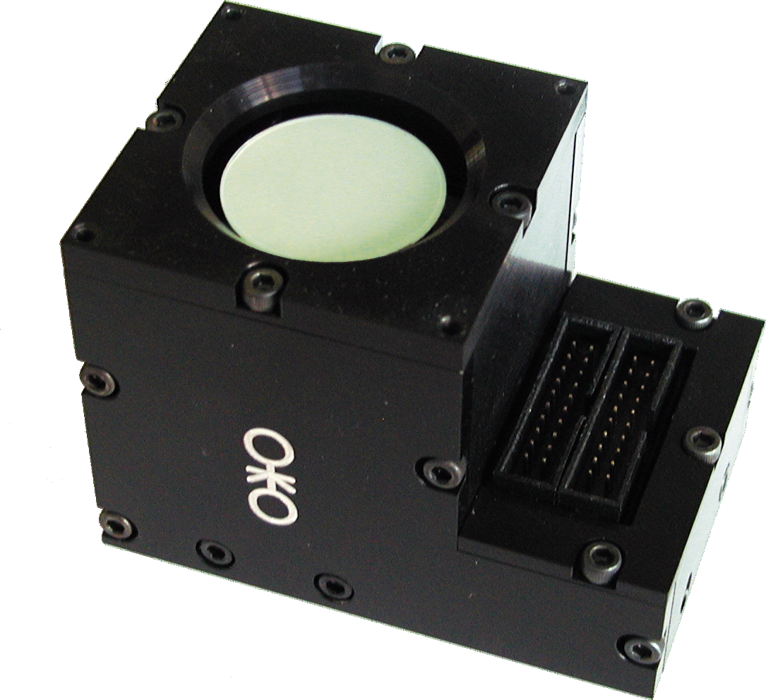 OKO Technologies produces low-cost piezoelectric deformable mirrors (PDM) with clear aperture of 30 mm and 50 mm, for laser and imaging applications. The full surface stroke is 6 μm standard, with maximum stroke between the adjacent actuators in the range 1 to 3 μm. The DM is controlled by OKO HV amplifer(s) and interfaced to a PC using 8-bit PCI, 12-bit USB, or 16-bit Ethernet controller(s). The full-amplitude mechanical response of the mirror is faster than 150 microsecond, but usually the response time is limited to 0.5 ms by the control electronics. For high power laser applications, the surface can be coated with a broad range of HR metal and multilayer dielectric coatings. PDM easily integrates with OKO FrontSurfer wavefront sensor into a complete closed-loop adaptive optical system running with frame frequency of 15 to 100 Hz. For direct laser beam optimization, the DM can be comnined with the BeamTuner optimization controller, consisting of optimization software and focal spot (brightness) sensor. Applications include dynamic correction of optical aberrations in high power laser, astronomical and imaging systems.