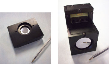 Figure 1: 17-ch membrane deformable mirror with integrated tip-tilt capabil-ity (left) and 19-ch piezoelectric mirror optimized for correction of low-orderZernike terms.