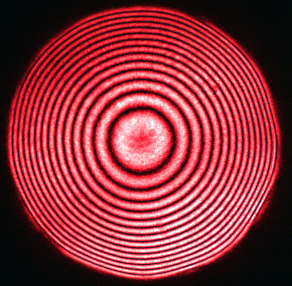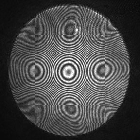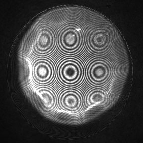 MMDMs with larger aperture have bigger maximum deflection (up to 15 um). But if you aberration is mainly defocus, we recommend you to consider our 30- and 50-mm PDMs with 18 actuators — due to the absence of the actuators inside the active aperture, they have defocus range corresponding to about +-12 µm deflection of the central point. Figure 2 shows interferograms obtained with 18-channel 30-mm PDM for maximum deflection and maximum defocus for 0.1 µm rms error in the reflected wavefront.